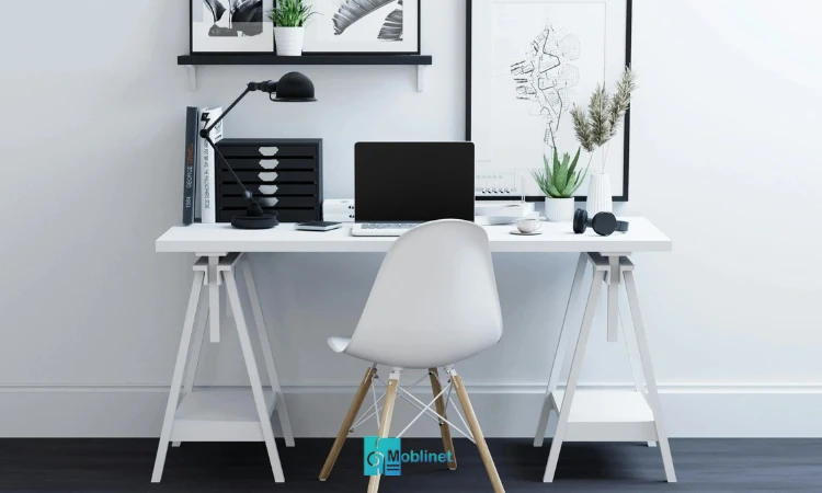 فراموش نکنید که میز تحریر بخش بزرگی از میدان دید شما را پر میکند. اگر دیوارهای رنگی دارید، میز تحریر سفید یا چوب روشن انتخاب کنید. اگر دیوارها سفید هستند، یک میز تحریر با رنگ چوب تیره یا طوسی میتواند نقطه کانونی جذابی باشد.